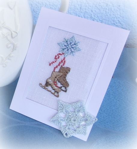 Am besten gefällt mir Karte Nr. 2, die mit den Schlittschuhen. Die ist klasse.